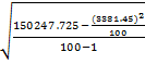 Standard Deviation, s = = = 18.9488 proceedingss |